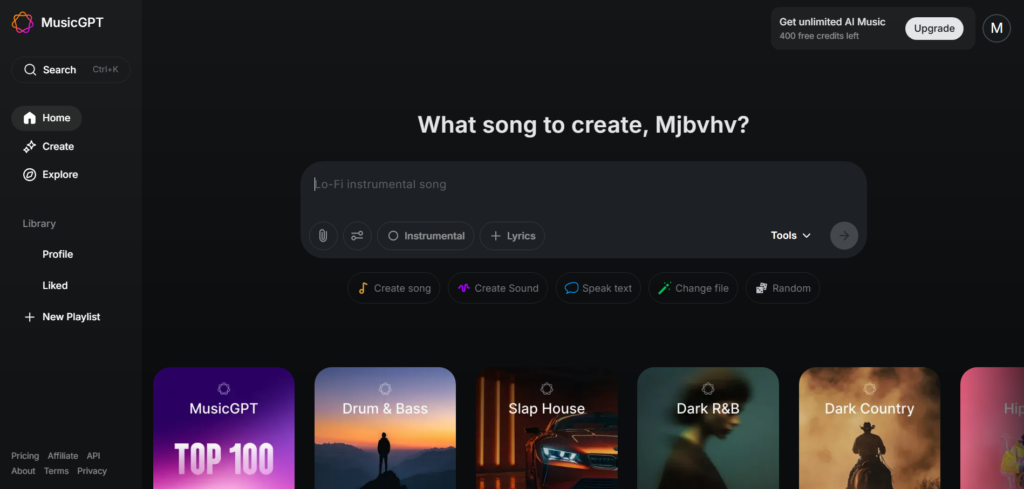 MusicGPT blends AI song generation with audio editing features. In addition to creating songs, users can modify or work with existing audio.