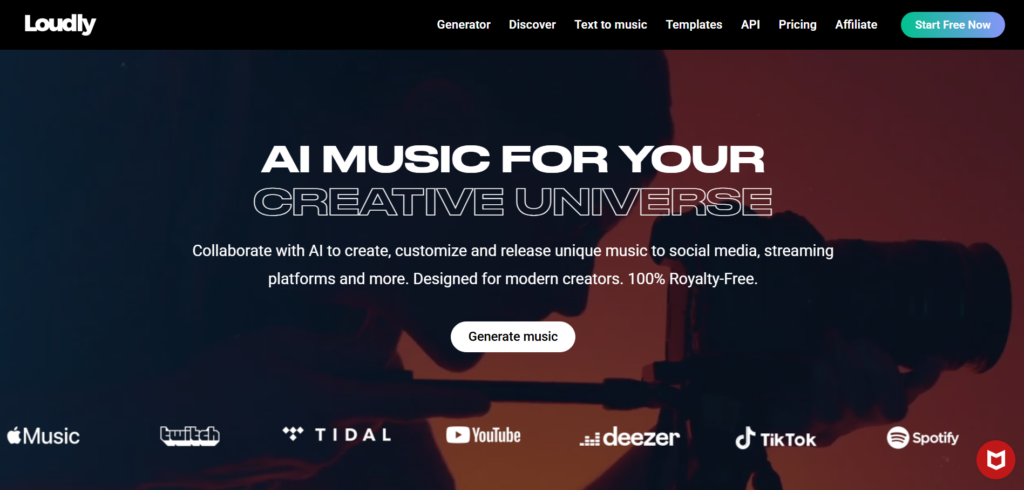 Loudly positions itself as a professional AI song and music platform with strong control over parameters like tempo, energy, and key. It’s often used for structured song and background creation.