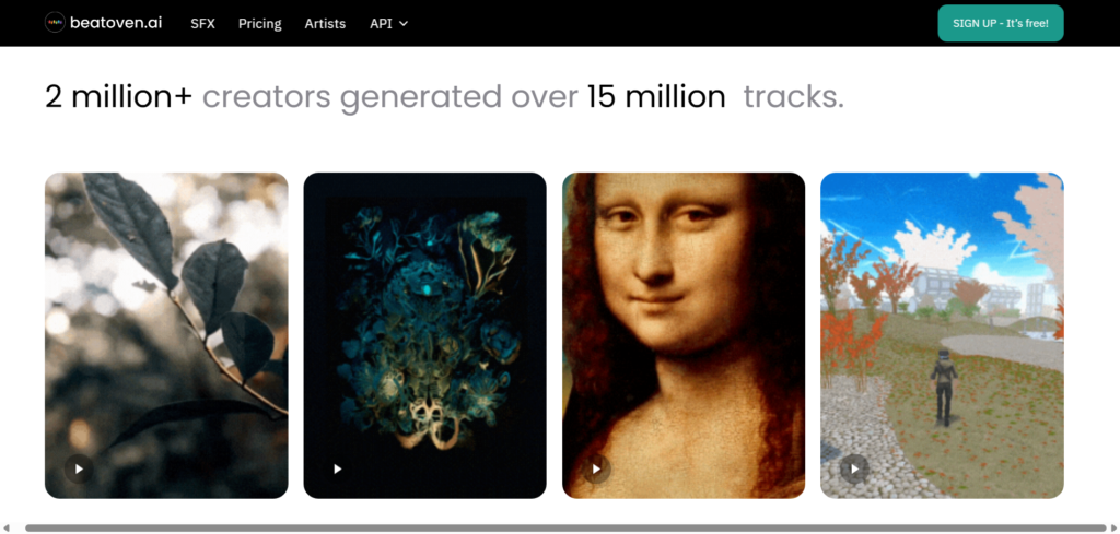Beatoven focuses heavily on licensed AI-generated songs and background tracks. It’s commonly used for podcasts, videos, and branded content.